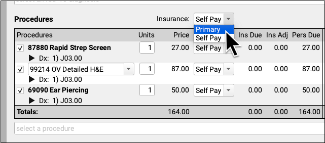 As needed, send only part of an encounter to a specific payor. Pick exactly which procedures from an encounter should appear on the claim.