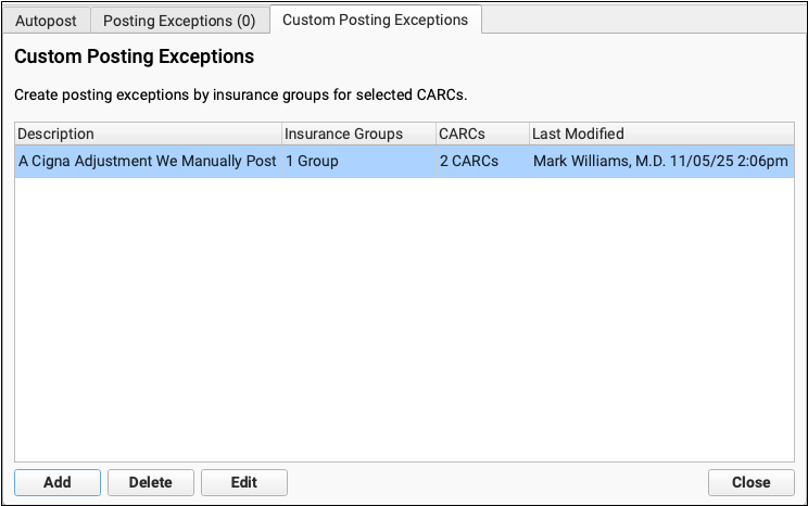 Got a special situation with a payor? Create your own custom rule that will prevent autoposting (based on payor and adjustment type) so you can process them on a manual worklist instead.