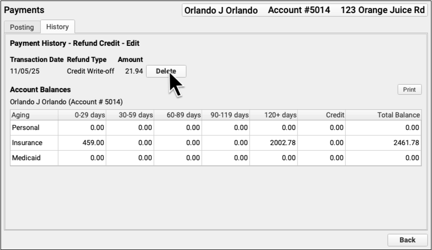 Oops! You posted an insurance takeback to the wrong account. PCC EHR 10.5 makes it easy to quickly delete refunds, write-offs, and reversals.
