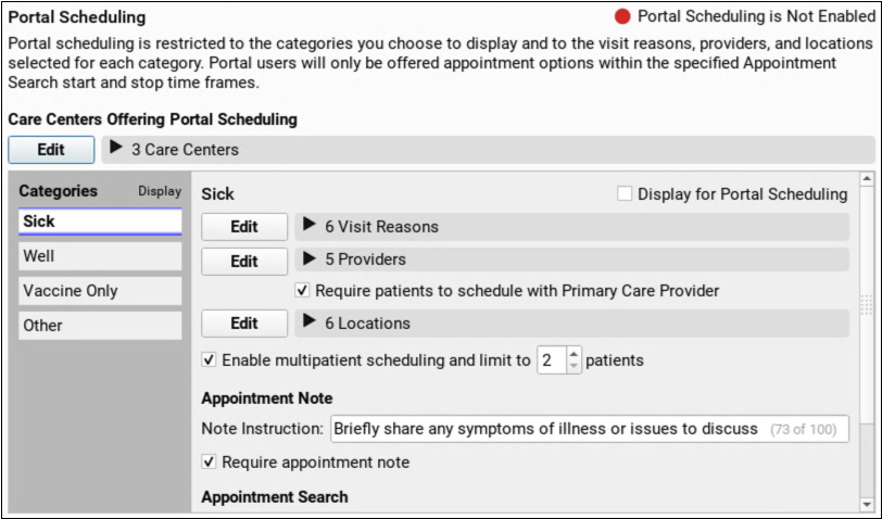 Configure the Portal Scheduling Search Rules to match your practice’s scheduling needs.