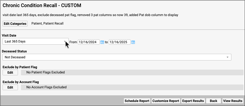 When your practice needs to export and work with the data from a large report, you can export it to your workstation from the Criteria page with one click. While any report can be exported using the Export Results button, report results that contain more than 20,000 rows should be run and exported using this method.