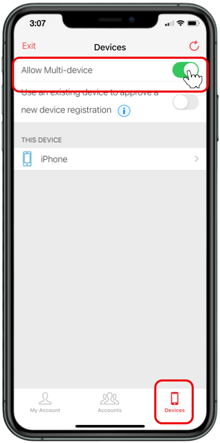 Once you add your new device, Authy recommends turning off the multi-device switch in your account settings until the next time you want to add a device. You can continue to use Authy on all of your approved devices when the multi-device switch is off.