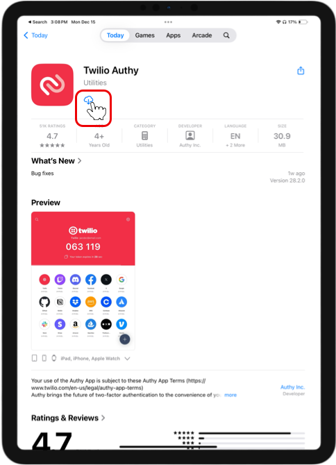 Find Authy in the App Store and install it on your iPhone or iPad.
