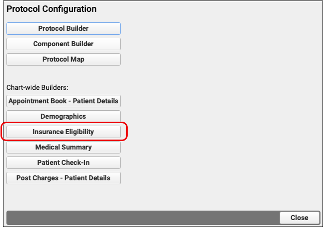 The Insurance Eligibility component primarily functions as an encounter-specific component. A more limited version is available on any protocol, however, for use when checking eligibility before a patient has an encounter.