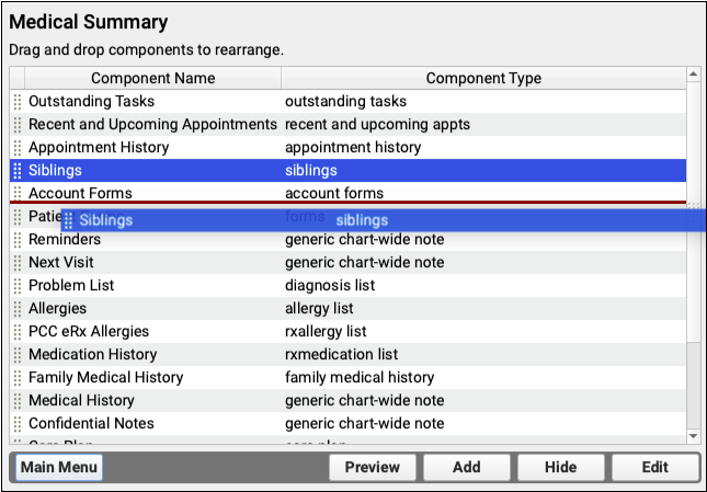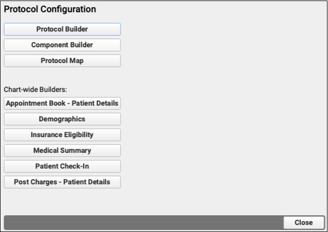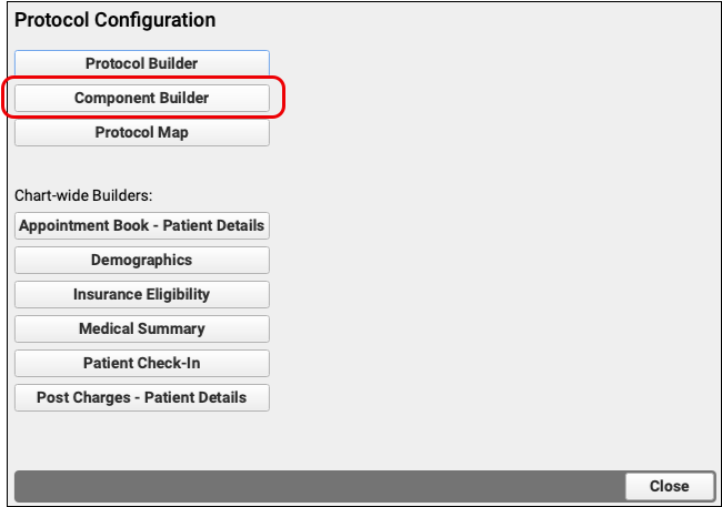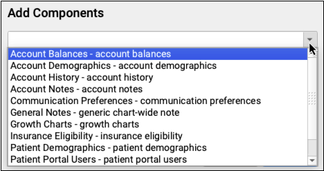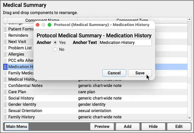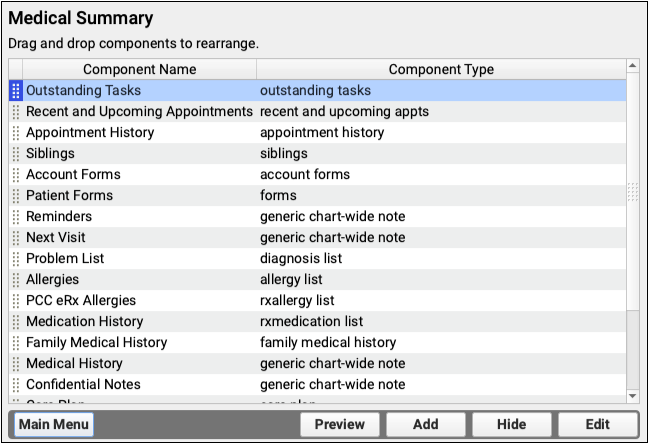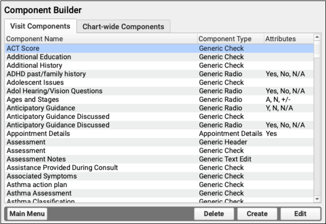 Components are the building blocks of protocols, which are used to create chart notes for visits, and other sections of the patient chart. By understanding the different component types and the available specialized components, you will be able create useful new sections for your chart notes and configure them.