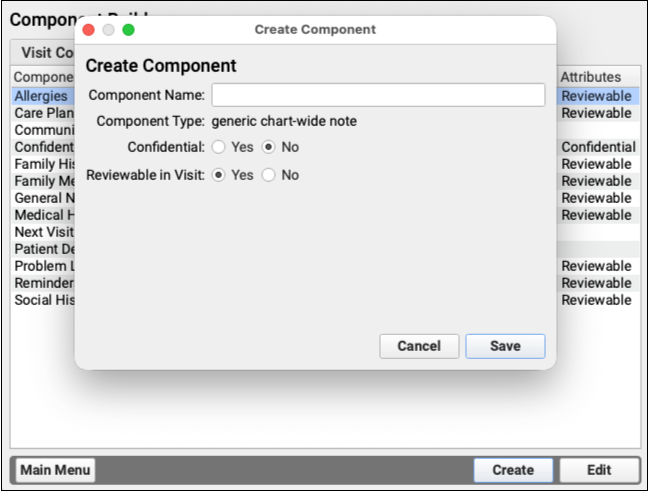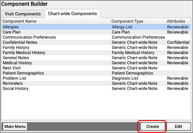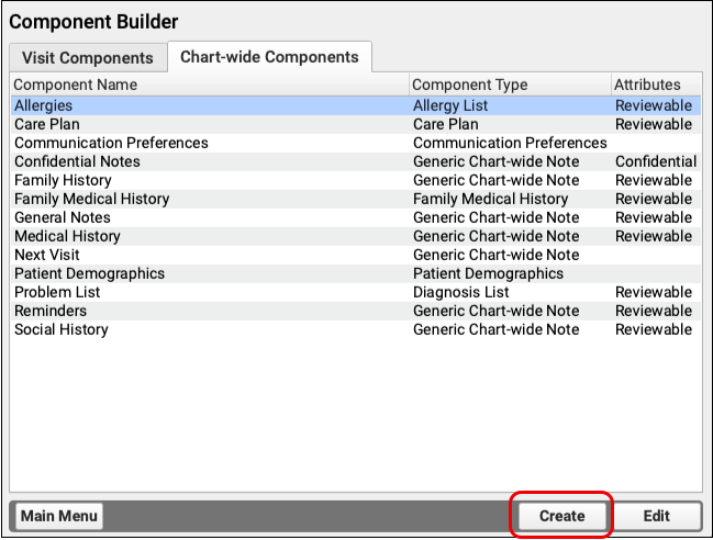 PCC EHR gives you the tools to make your own components, so that you can decide exactly what information you want to track for your patients, and how you want to collect that data. Following are several types of components that you can build yourself.