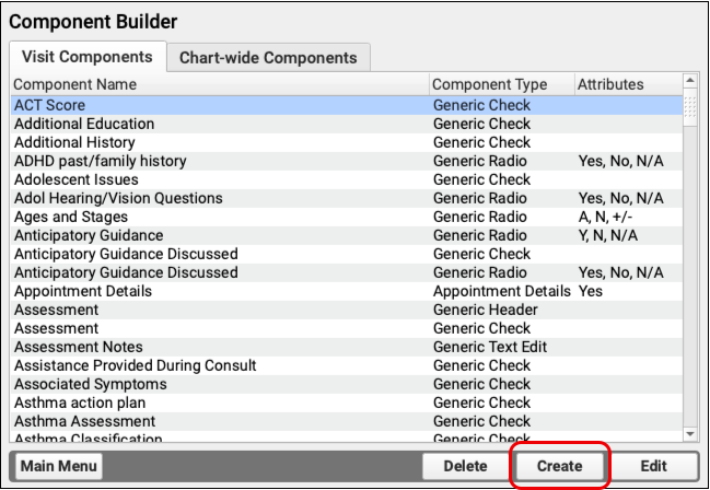 You will also notice that you probably already have a number of these “Generic” components listed in your Component Builder, as PCC EHR includes a number of components that were built to go within certain protocols, for example, the Bright Futures protocols that many PCC clients choose to use.