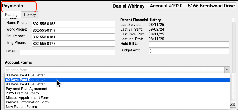In addition to balance details, the printout includes your practice’s information as well as the date it was generated.