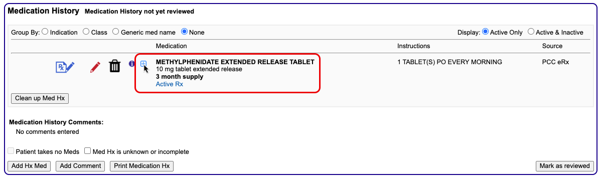 You cannot edit the information in the Medication History component outside of PCC eRx.