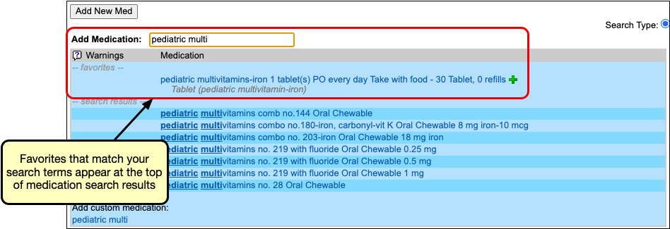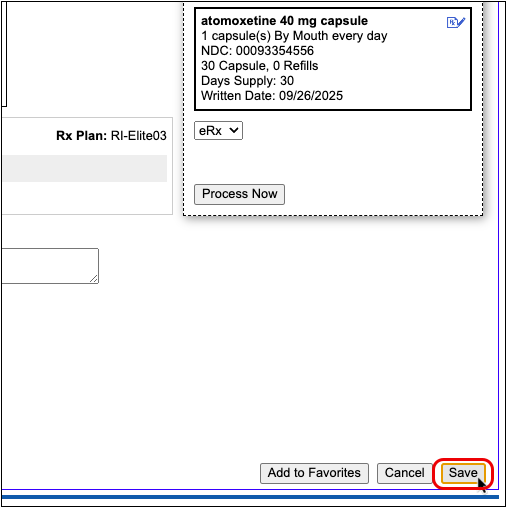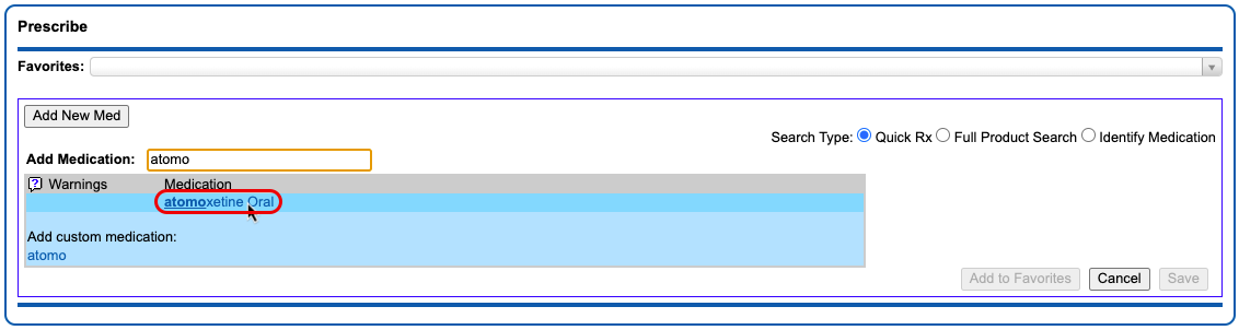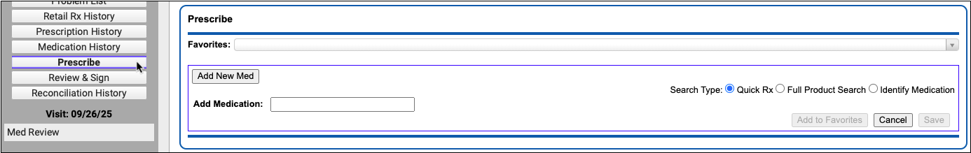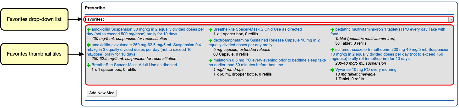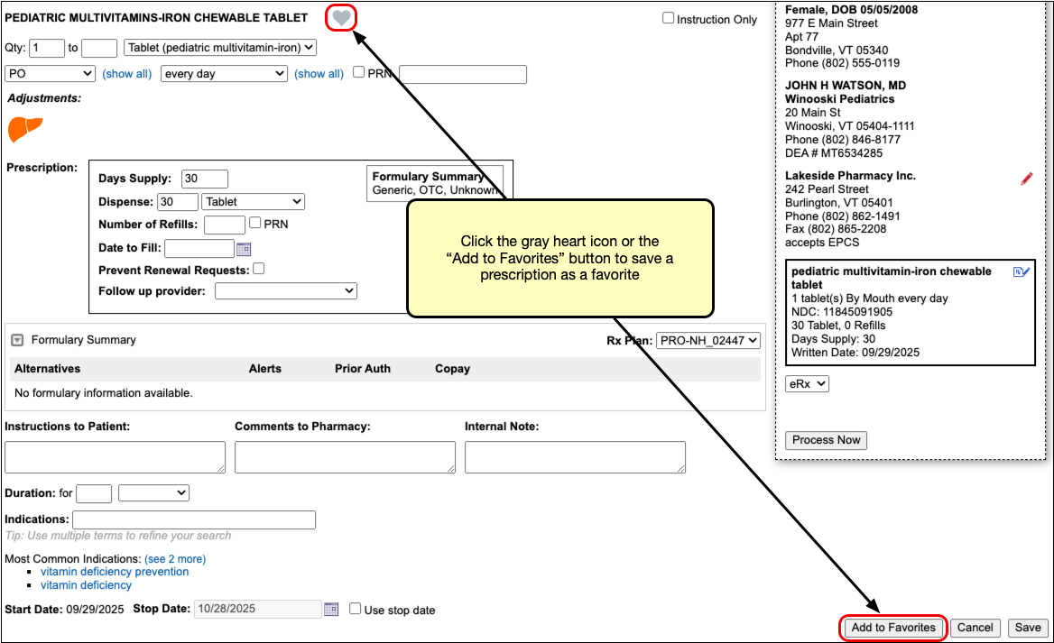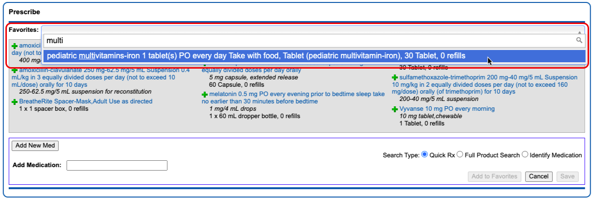 Prescribe from Favorites: Another way you can prescribe is from your Favorites list. Learn how to create, prescribe, and manage favorites in the PCC eRx Favorites article.