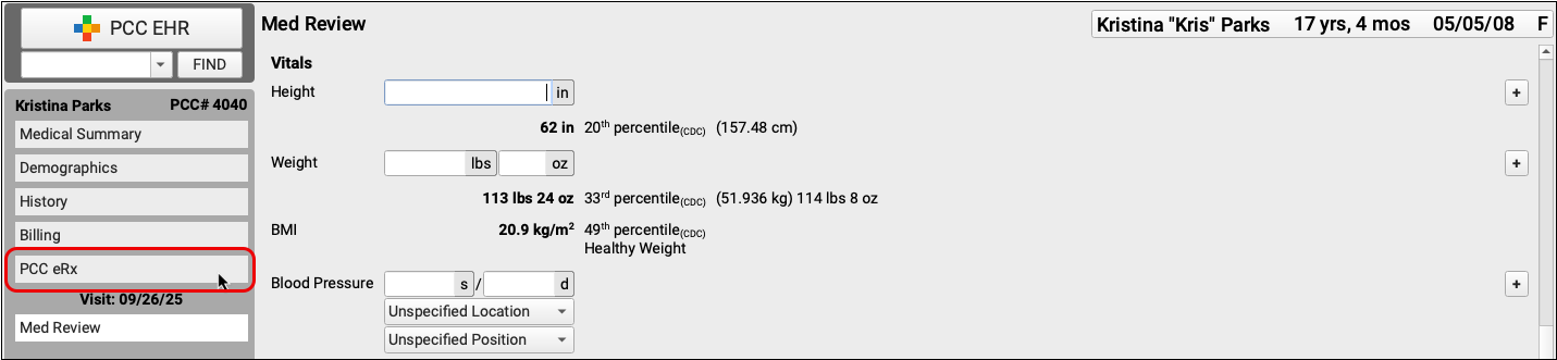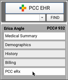 You can prescribe from a phone note or portal message in PCC EHR, or create a dedicated eRx encounter if the patient has no other encounter with which to associate a prescription.