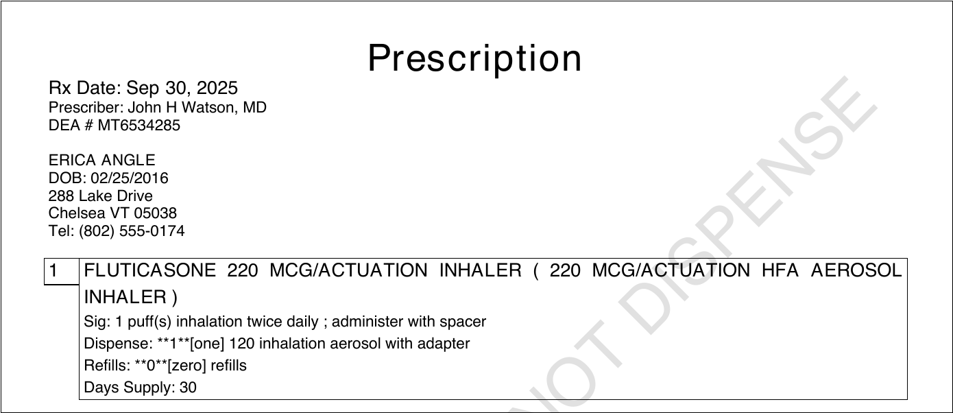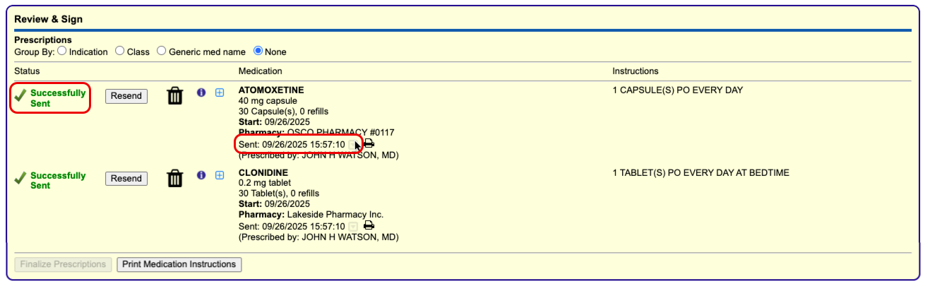 - Select “Print” to print the prescription to give to the patient or fax to the pharmacy.