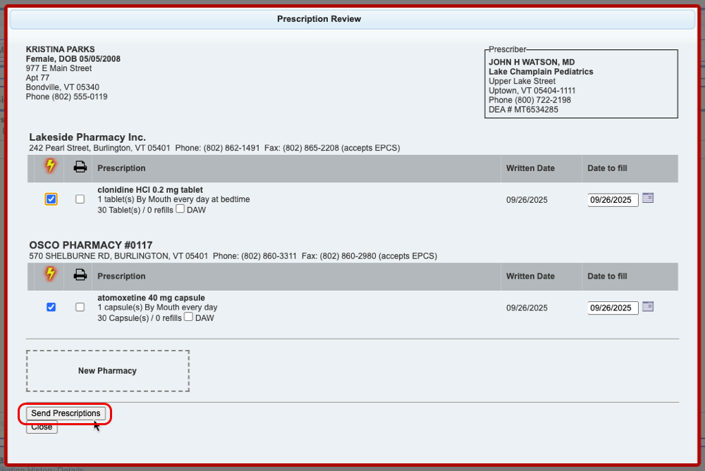 When all prescriptions have been paired with the correct pharmacy, click “Send Prescriptions” to process all of them at once.