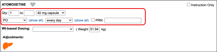If the dosing instructions are more complex than the standard fields for quantity, route, and frequency allow, check the “Instruction Only” box.