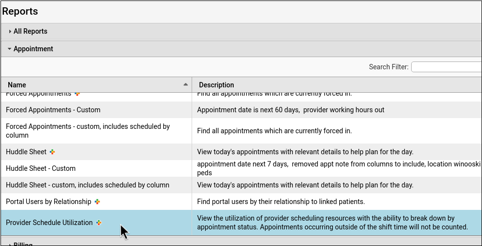 Report on Visit Reason and Other Filters by Time Period: Does your practice need to shift the templated ratio of sick and well visits for certain shifts? The Provider Schedule Utilization This report can give you the proportion of visit reasons for a period of time, with an aggregate total that can help you understand the volume of each visit reason (or other criteria) that your practice is fielding by day, or over a period of time.